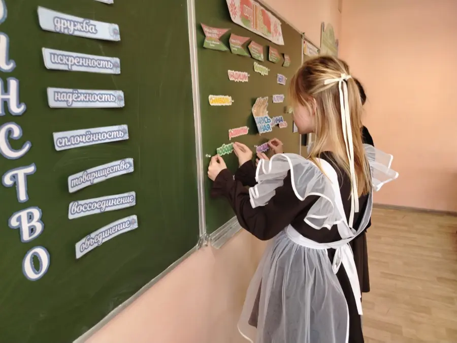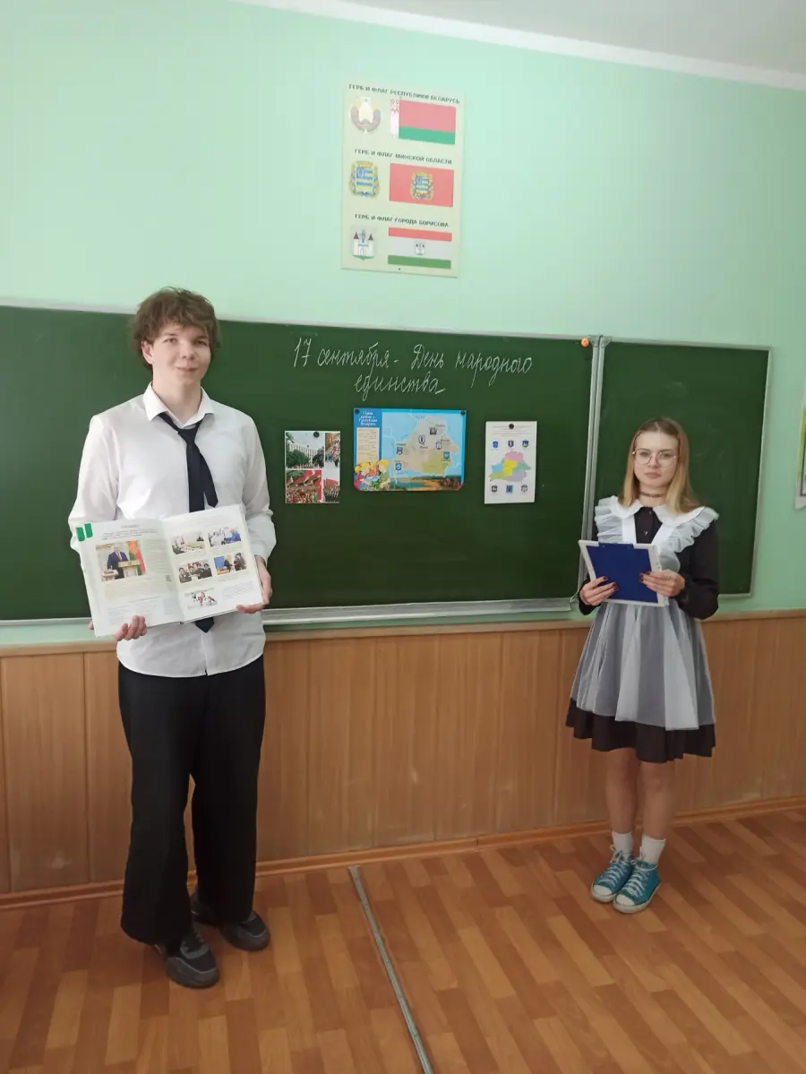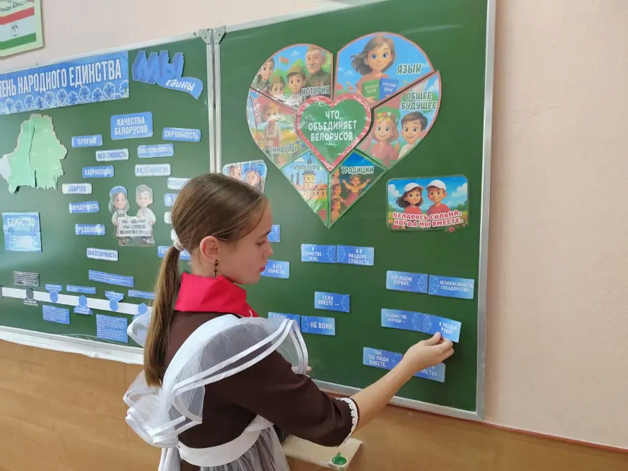 Единый урок, посвященный Дню народного единства, прошел в гимназии. Говорили об историческом прошлом Беларуси, значении и смысле государственного праздника. А еще о важности единства народа для обеспечения национальной безопасности. Урок прошел в форме живого диалога. Ребята изучали карту «Границы Беларуси: «1921-1945 годы», обменивались мнениями на тему праздника, говорили о справедливости, сплоченности белорусов и умении жить в дружбе.