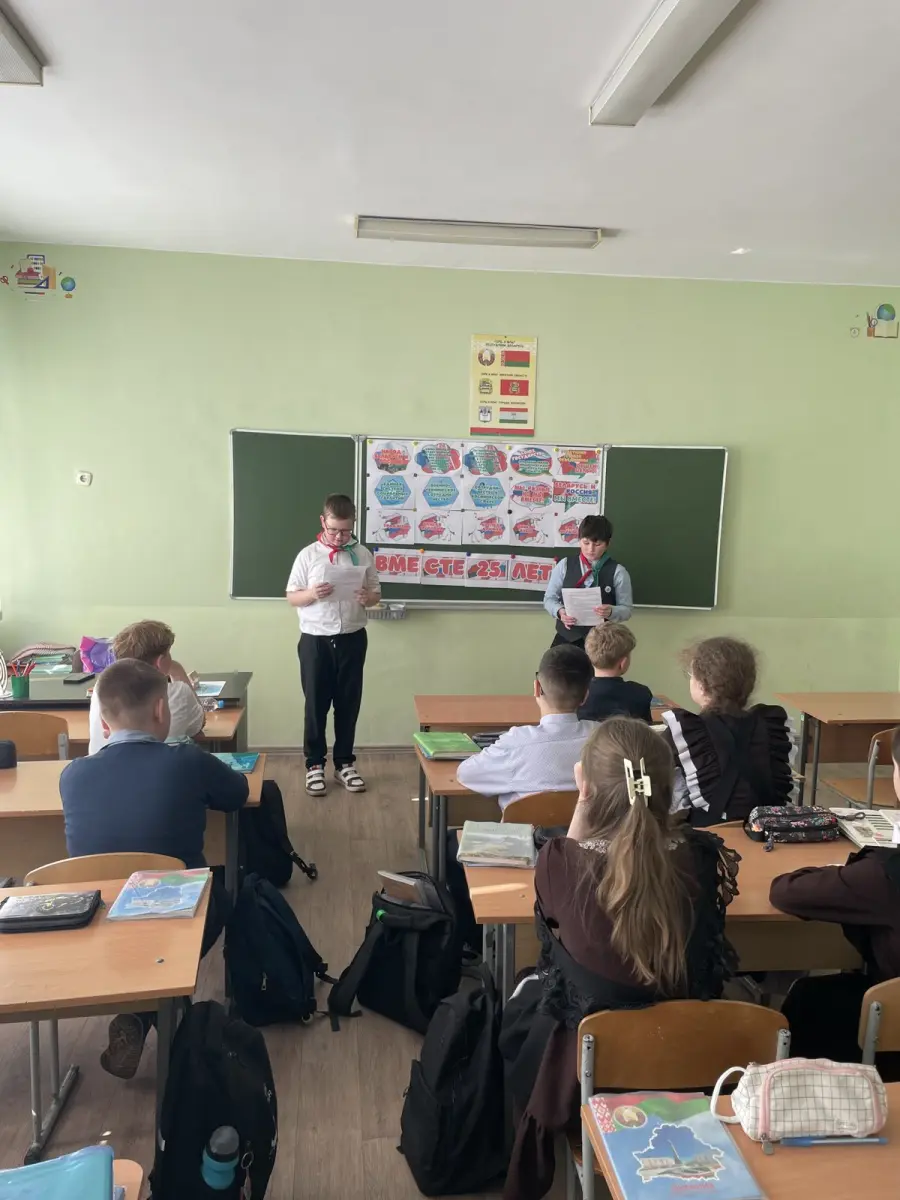Занятия – в формате живого диалога. Ребята участвовали в блиц-опросах, вспомнили историю возникновения праздника и даже отправились в виртуальный тур по знаковым местам Беларуси и России. Активно велись дискуссии, учащиеся обменивались мнениями по самым разным темам. Обсуждали в том числе, как культурное и образовательное пространство объединяет белорусов и россиян сегодня.