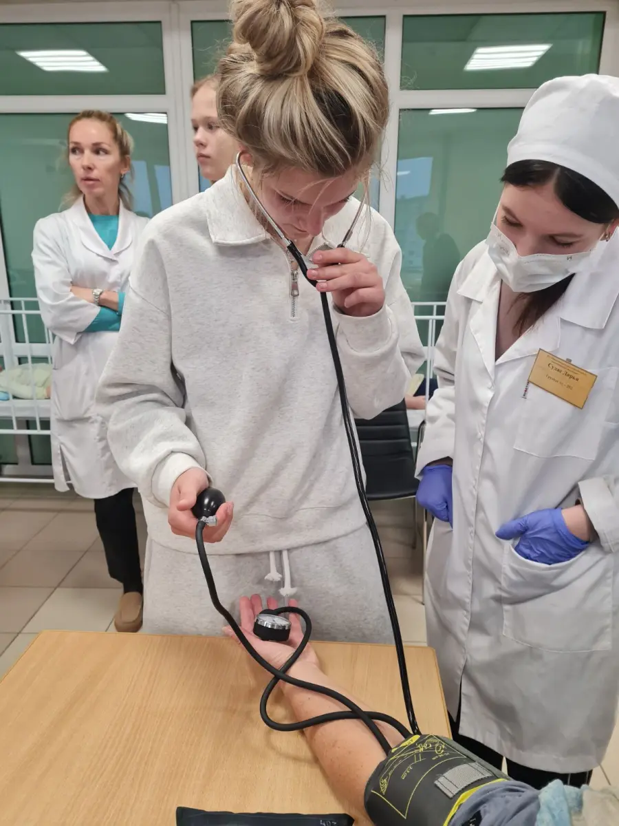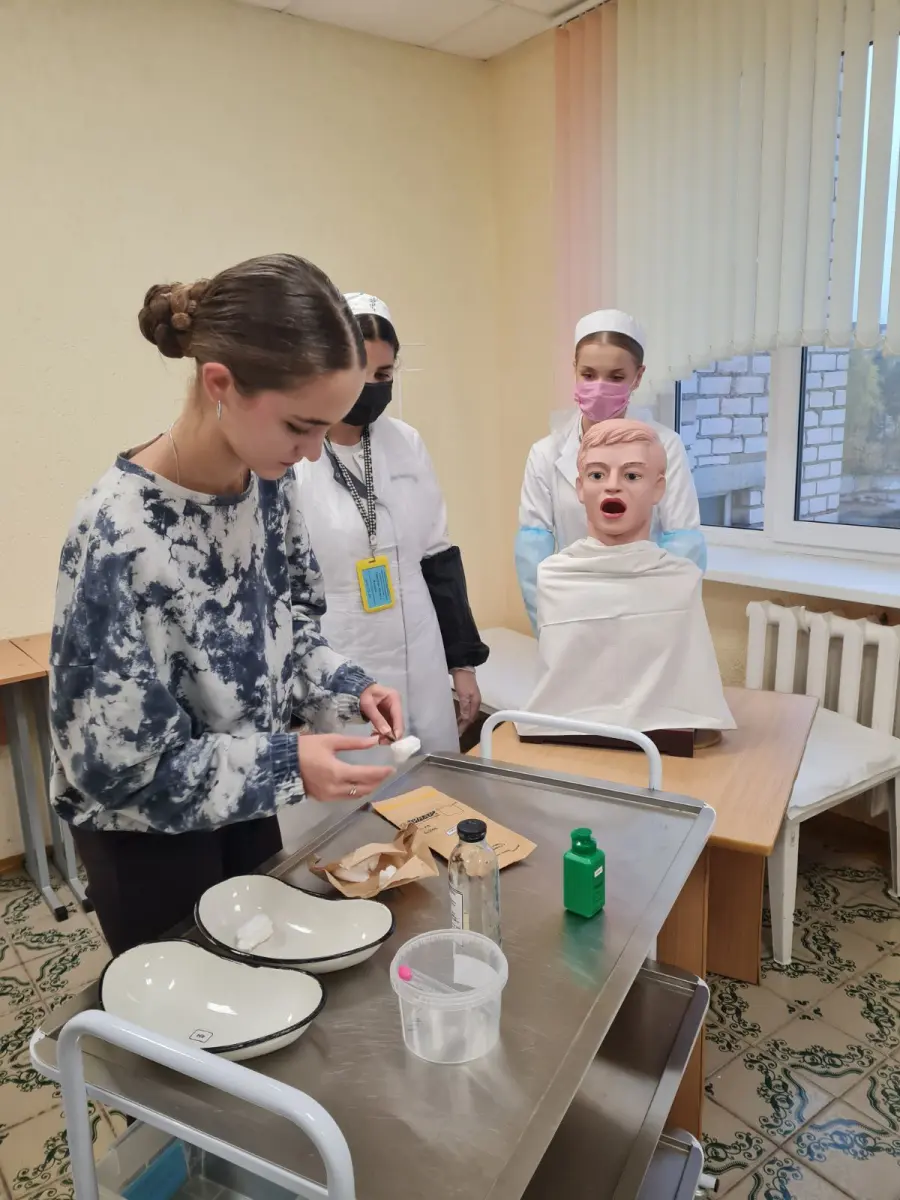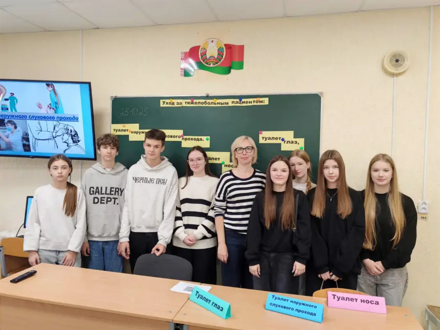 25 октября 2025 года в рамках профориентационной работы учащиеся групп профессиональной направленности 9 х и 10 х классов посетили УО "БГМК". Перед ребятами выступили преподаватели медколледжа, рассказали о данном учреждении, о правилах приёма. С большим интересом учащиеся поучаствовали в практико-ориентированных мастер-классах на базе лаборатории по отработке навыков. В конце встречи была сделана общая фотография, каждому вручили " билет в будущее" с необходимой информацией по вопросам поступления и выбора специальностей.