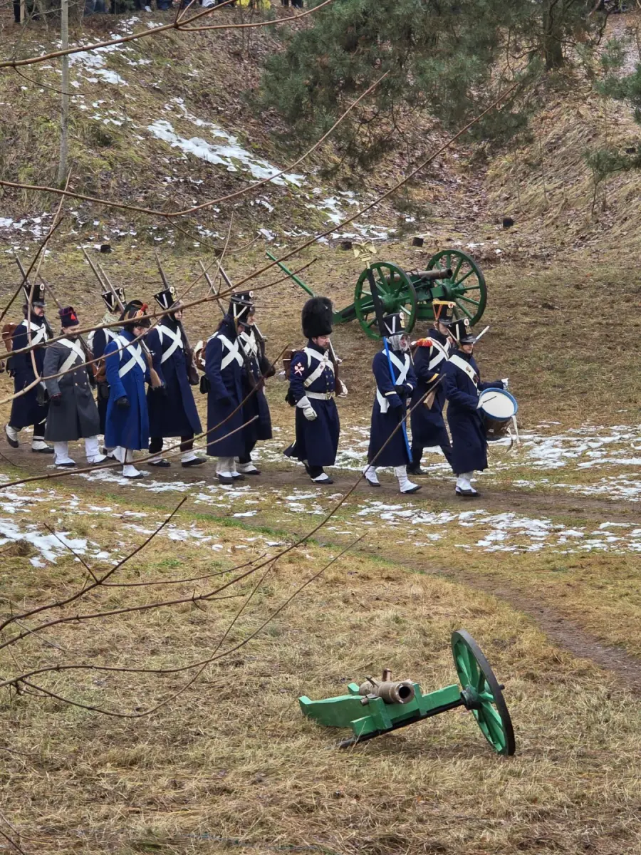 Борисове сегодня было горячо. Здесь столкнулись эпохи. Где-то там, в ноябрьской дымке, 21-й век на час уступил место 19-му. Сегодня на историческом месте — «Чичаговских батареях» — вновь сошлись в «кровавой» схватке русская и французская «армии». Залпы орудий, ружейная перестрелка, стук сабель и яростные атаки кавалерии — так в Борисове отметили 213-ю годовщину сражений, ставших символом краха великой армии Наполеона. Сгустившийся над Батареями туман не помешал многочисленным зрителям оценить масштаб сражения и окунуться в эпоху наполеоновских войн. На Батареях, кроме реконструкции, для зрителей были развернуты торговые точки, где можно было приобрести сувенир, а в Борисовском объединенном музея работала экспозиция, посвященная войне 1812 года, на которой только один день демонстрировался уникальный экспонат — навершие с древка французского знамени в виде бронзового орла. Там же были представлены тематические фотозоны: каждый желающий мог сделать снимок на память об этом дне.