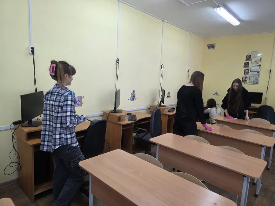 В нашей гимназии трудовой коллектив занимался благоустройством рабочих мест, озеленением территорий Учителя вместе с учащимися наводили порядок на школьной территории, приводили в порядок в свои классы. Заработанные в этот день средства направлены на создание экспозиции Национального исторического музея.