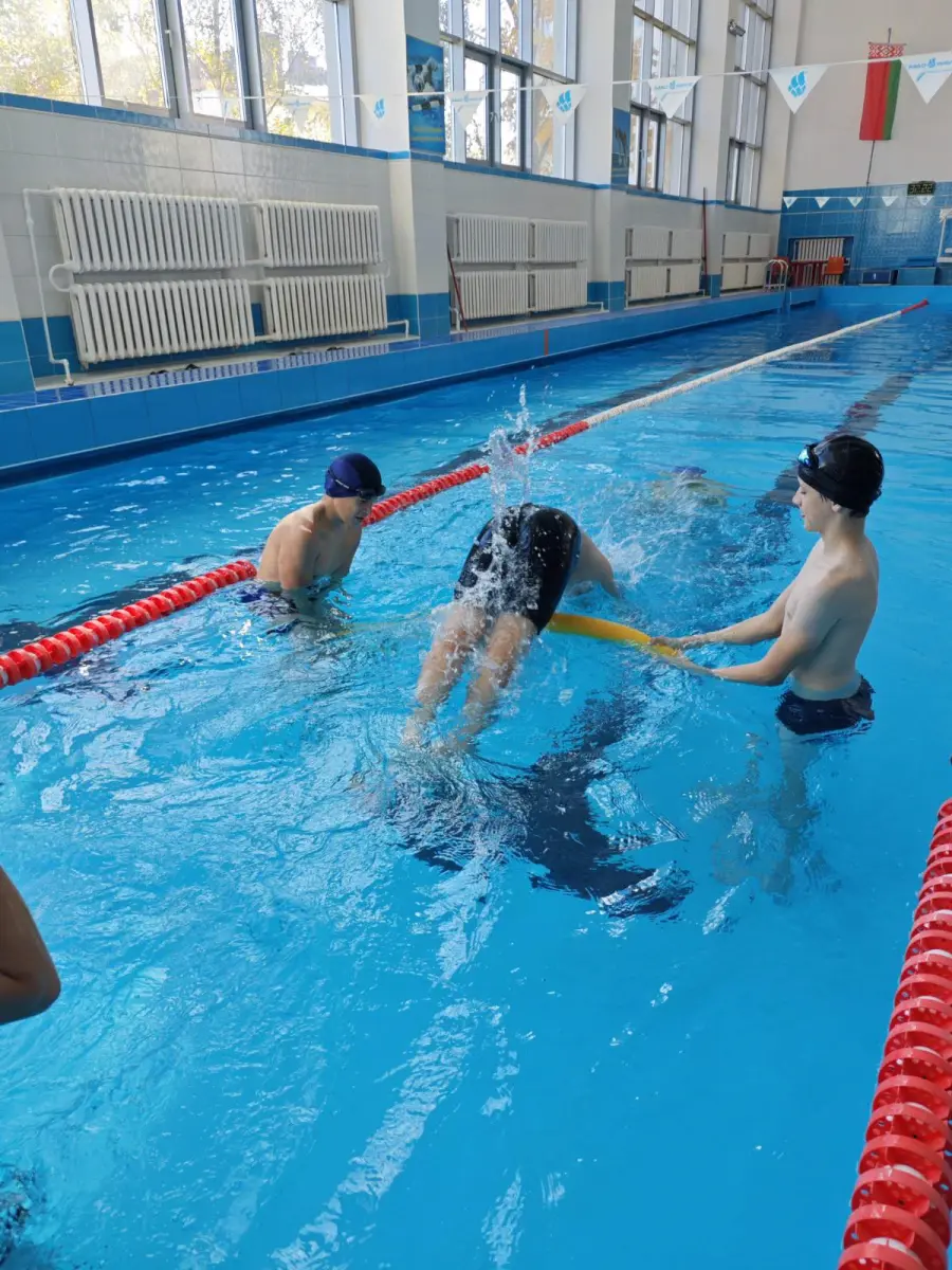 С октября месяца возобновились занятия 8г класса ОСВОД в городском Доме спорта. Ребята повторяли навыки плавания на груди и спине, доставали предметы со дна бассейна, ныряли в обруч, играли в водное поло, а также закрепляли технику броска спасательного круга утопающему.