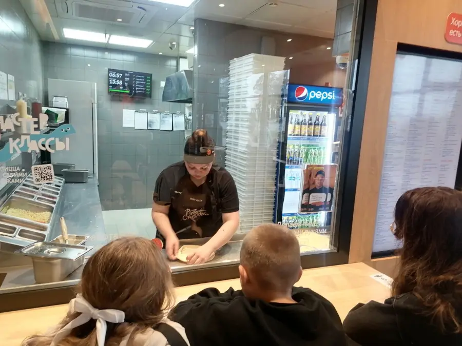 4 ноября учащиеся 8 "А" класса приняли участие в мастер-классе по приготовлению пиццы в "Додо пицца". Дети познакомились со всеми этапами приготовления пиццы, узнали об особенностях раскатки теста и последовательности нанесения соусов и начинки. Также ребята увидели рабочее место повара пиццерии и инструменты, которыми он пользуется. В конце мероприятия дети продегустировали разные пиццы и постарались определить их состав. Время пролетело быстро, приятно и с пользой. Дети не только узнали что-то новое, но и пообщались на разные темы.
