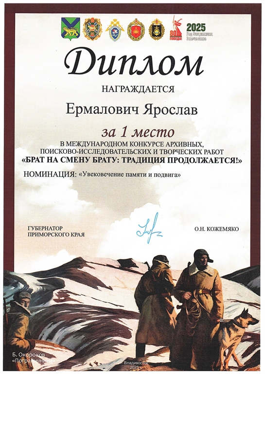 Гимназисты приняли участие в этом конкурсе. Участие было результативным! В номинации "Увековечение памяти и подвига" у нас 1 место. Поздравляем Кранцевич Зою Степановну, руководителя проекта, Кореневскую Карину, Качан Елизавету, Ермаловича Ярослава, Гювена Марата