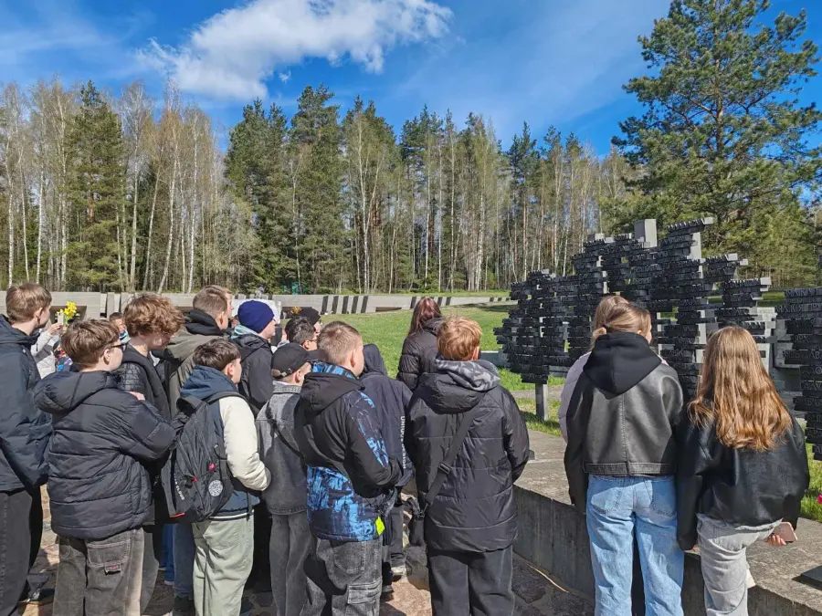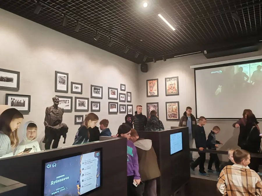 Минутой молчания ребята почтили память погибших в годы Великой Отечественной войны. С трепетом в сердце учащиеся посетили и открывшийся музей на территории комплекса «Кожны трэці» в память о белорусах, жизнь которых унесла Великая Отечественная война. С большим интересом ребята слушали рассказ экскурсовода и следили за каждым его движением, чтобы не пропустить, что-то важное и запоминающееся.