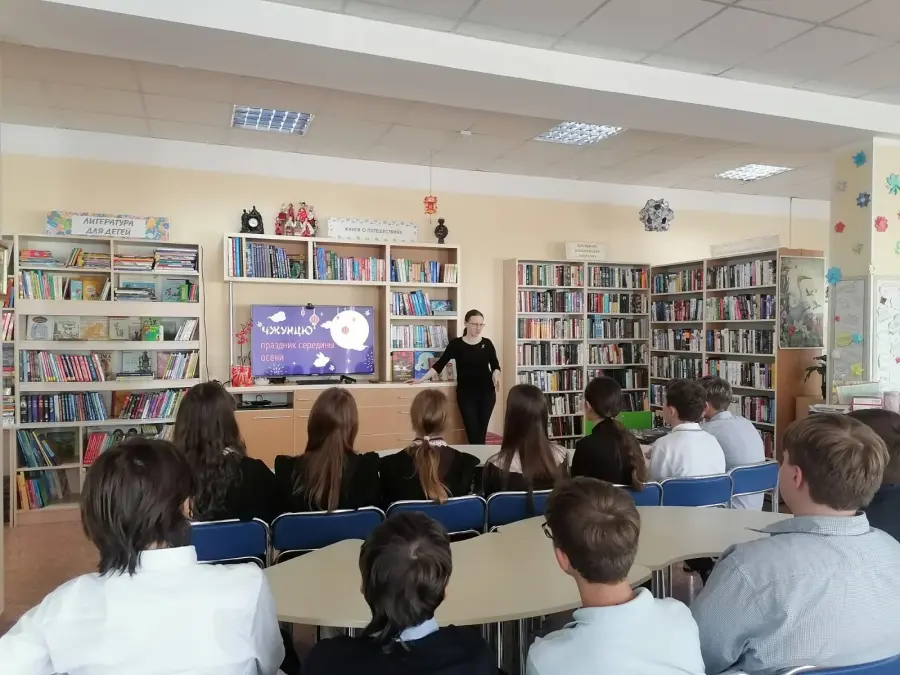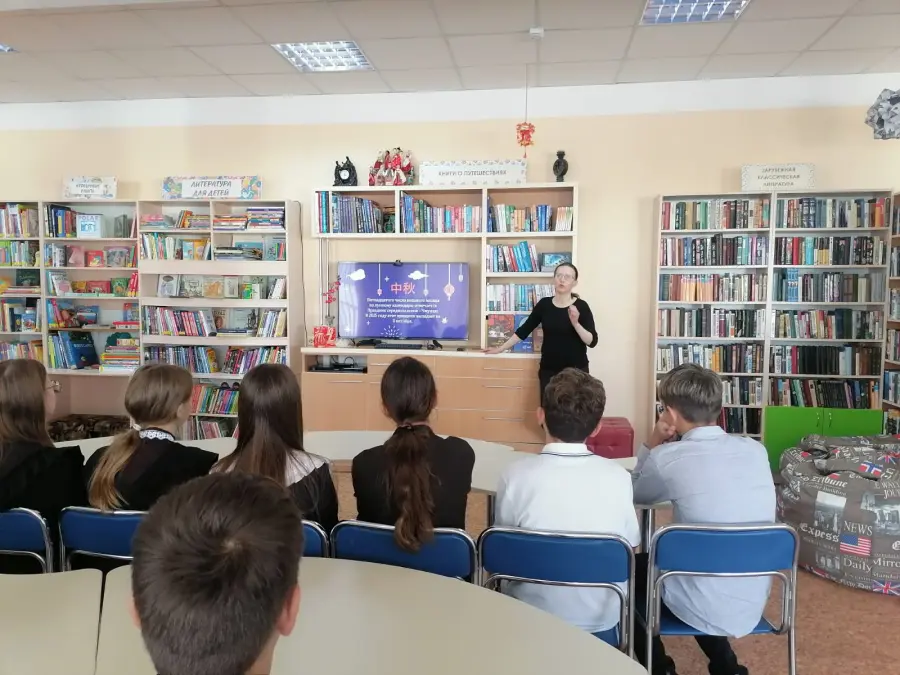 6 октября 2025 года учащиеся 8 "А" класса побывали в ГУК БЦРБ им. И. Х. Колодеева и узнали, как празднуют праздник середины осени в Китае. Он является нематериальным наследием ЮНЕСКО и Днем единения всей семьи. Ребята посмотрели мультфильм о Чан Э, узнали рецепт лунных пряников и прошли онлайн викторину о празднике. Победители получили призы, а участники праздника-памятные сувениры