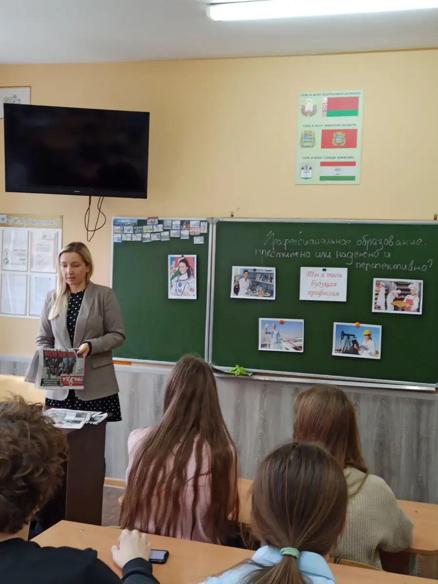Вначале был совершен небольшой обзор современных профессий и их роли в обществе. Обсуждались опасения относительно быстрого устаревания некоторых родов деятельности. Далее перед учащимися выступили родители Дроздовская Е.В., собственный корреспондент ИА «Минская правда», и Лихачевская И.С., заведующая отделом повышения квалификации и подготовки работников УО «Борисовский государственный медицинский колледж». Они рассказали ребятам о причинах выбора своих профессиональных путей, поделились с гимназистами историями из опыта работы. Учащиеся, в свою очередь, говорили о важности профессионального образования как базы для стабильной карьеры и финансовой независимости.