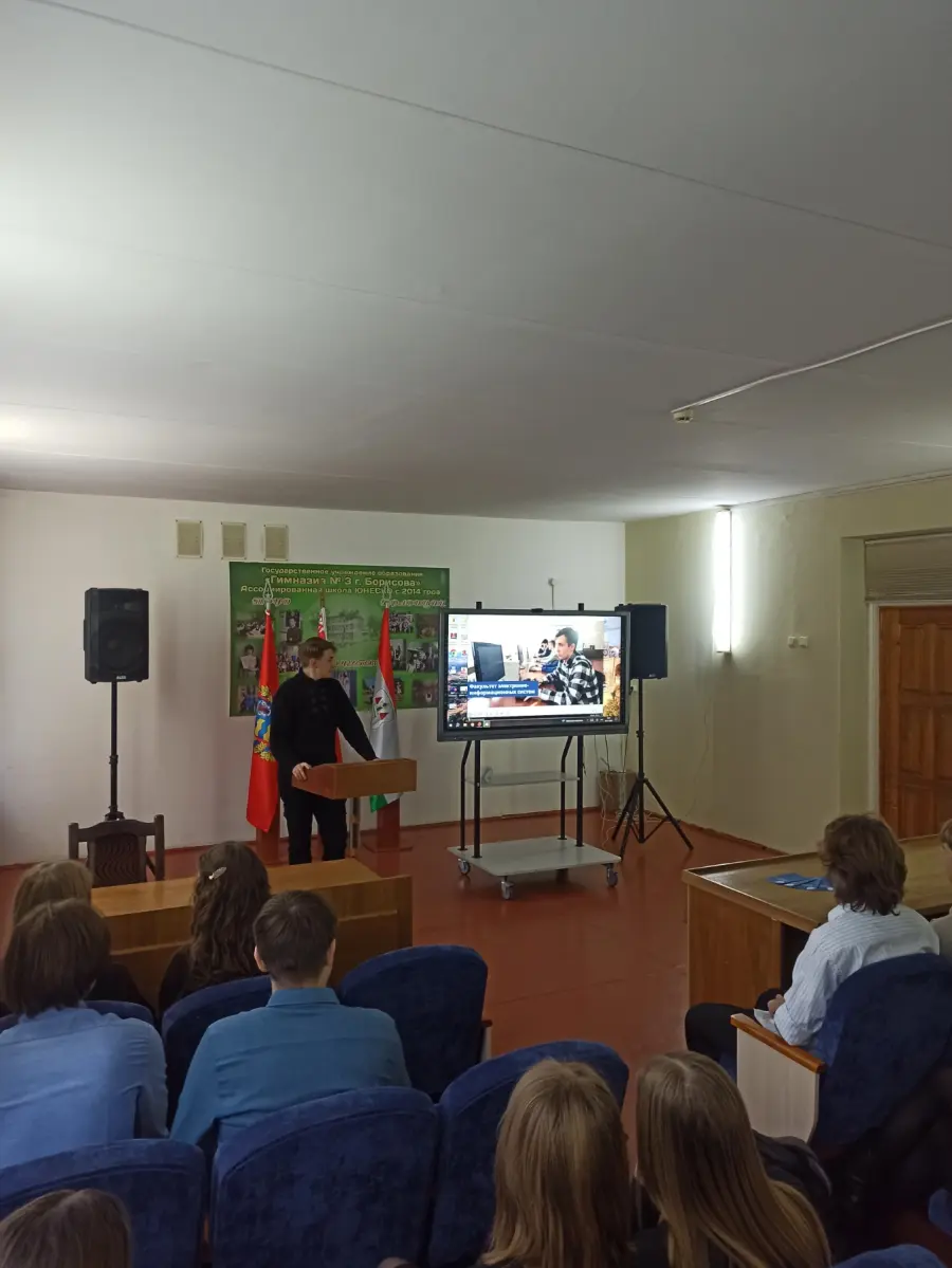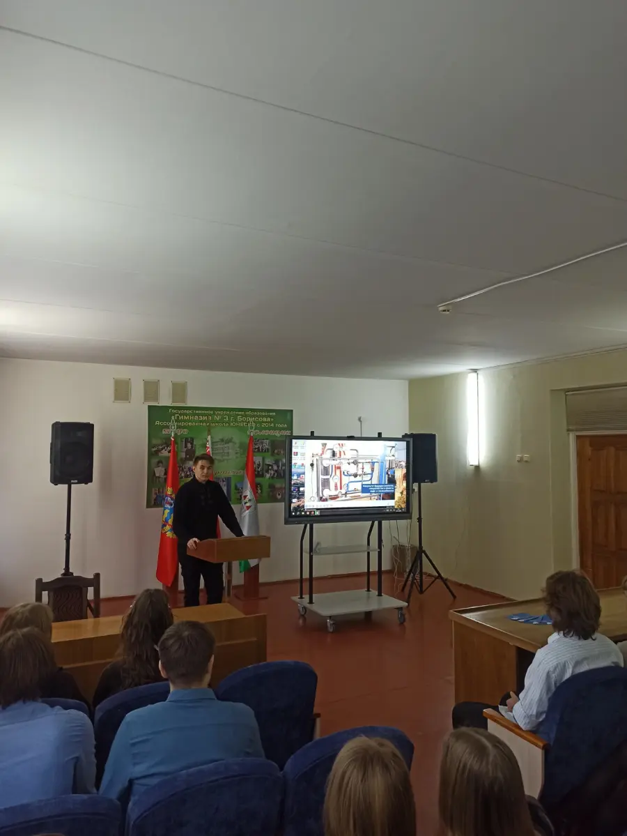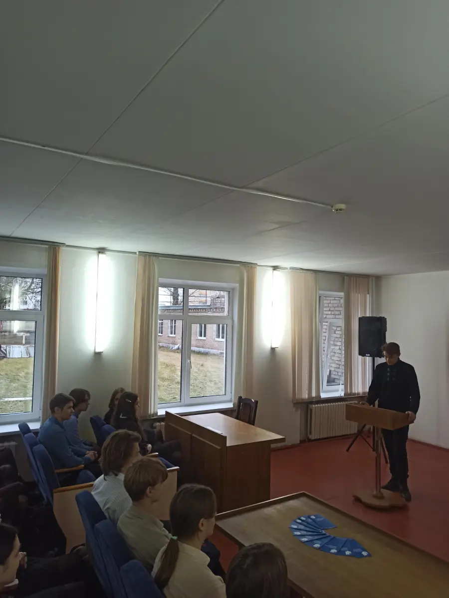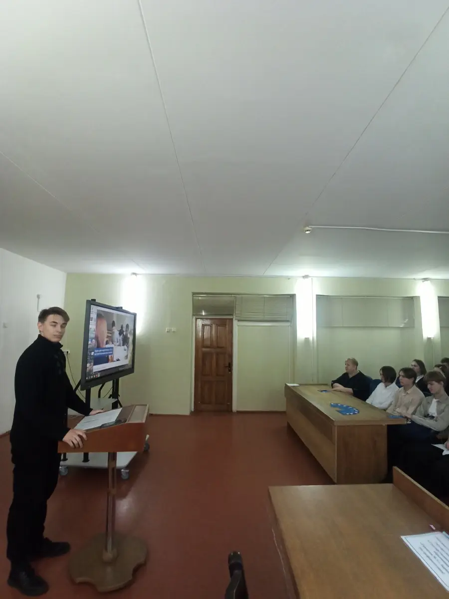 В четверг 20 ноября учащиеся 11-х классов собрались в актовом зале для для встречи со студентом-первокурсником Брестского государственного технического университета Георгием Онищуком. Мероприятие проходило в рамках профориентации, целью которой было познакомить старшеклассников с возможностями получения высшего образования и помочь им определиться с выбором будущей профессии. Выпускник гимназии 3 г. Борисова, студент БрГТУ, Георгий Онищук рассказал о своем опыте поступления и учебе в вузе, подчеркнул важность правильного выбора специальности. Он подробно описал условия обучения: учебные корпуса, изучение различных предметов, наличие практических занятий и перспективы трудоустройства.