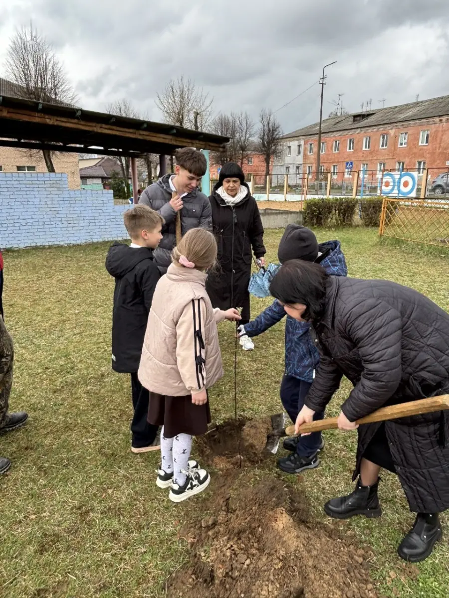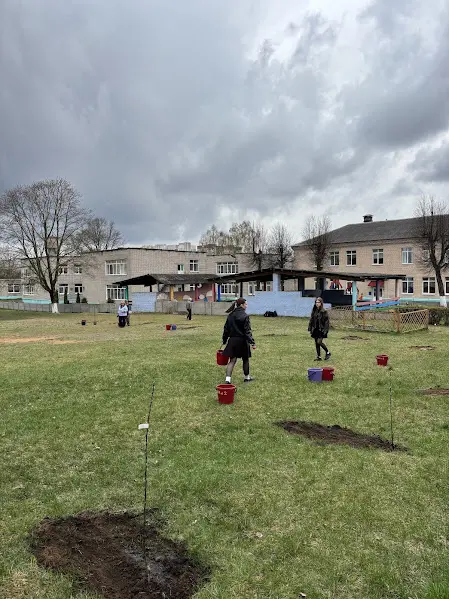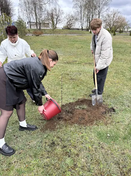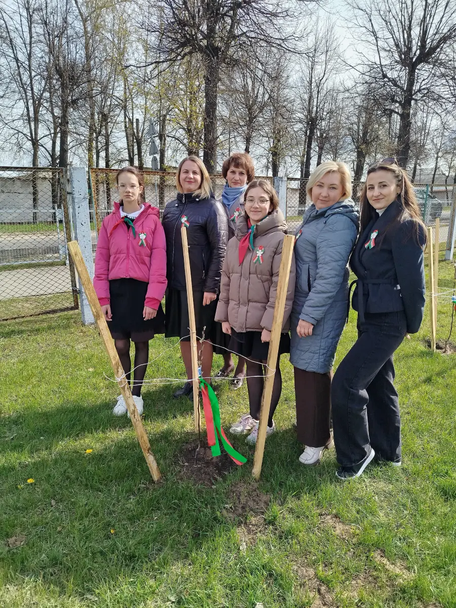 Директор Государственного учреждения образования «Гимназия № 3 г. Борисова» Кирик Ирина Валерьевна, учащиеся, члены ОО "БРПО", ОО "БРСМ", педагоги гимназии приняли участие в акции вместе с Городецкой Ольгой Викторовной, председателем Борисовской РО ОО «БСЖ». Участники акции посадили 15 яблонь - начало будущего сада.