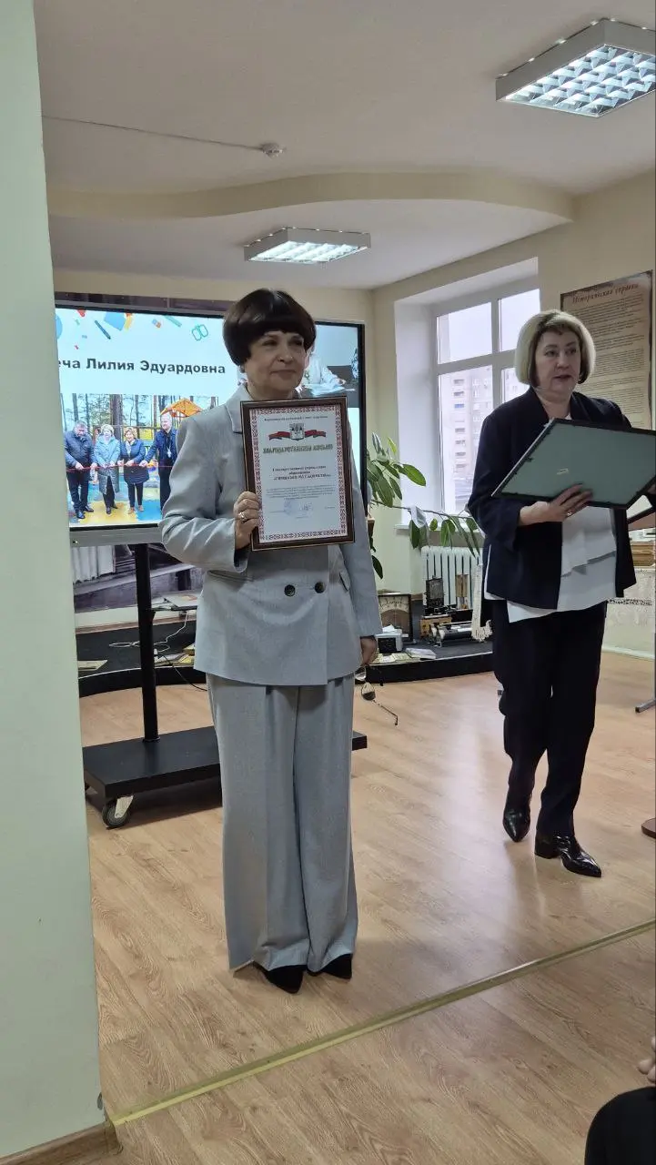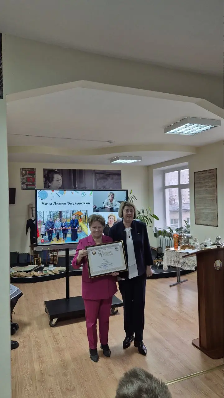 Ну, а как обойтись без подарков? Чеча Лилия Эдуардовна вручила Почетную грамоту нашему руководителю музея Кранцевич Зое Степановне за тот неоценимый вклад, который лично она вносит на благо и процветание музея.Сертификат от профсоюзной организации Борисовского района Гринь Наталья Владимировна подарила музею Борисовского района "Память".