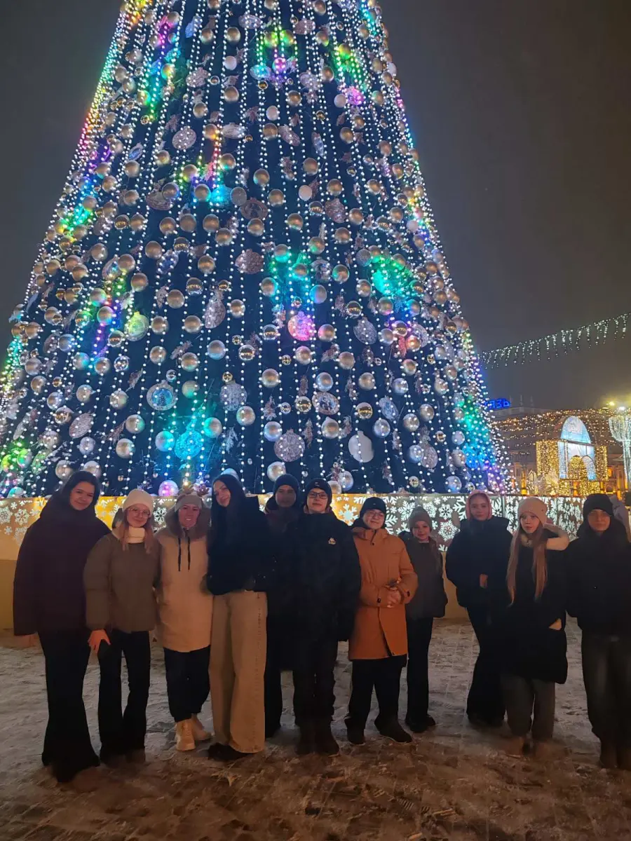 Праздничное представление стало для ребят настоящим путешествием в сказку. Уже с порога их встретила атмосфера волшебства: сверкающие гирлянды, аромат хвои и всеобщее оживление. Центром притяжения, конечно же, была великолепная пушистая ель, украшенная сотнями огней и игрушек.