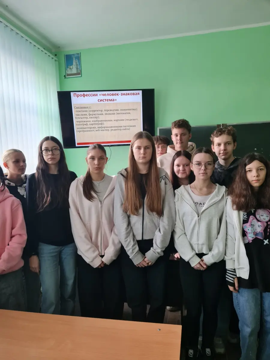 Для учащихся 9 "Г" класса было проведено мероприятие по теме " Человек - знаковая система" Ребятам была показана презентация по этой теме. Обсудили, какие профессии относятся к данному типу, определили основные характеристики людей, связанных с этим родом занятий. Для себя учащиеся открыли названия некоторых новых профессий, которые очень востребованы в настоящее время
