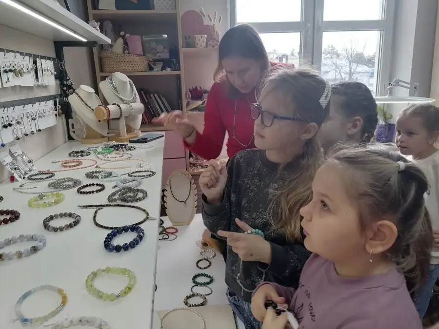Учащиеся 2 А класса побывали в художественной мастерской по изготовлению украшений из натуральных камней. Юлия Ивановна Грук провела экскурсию и рассказала, как выбрать профессию по душе.
