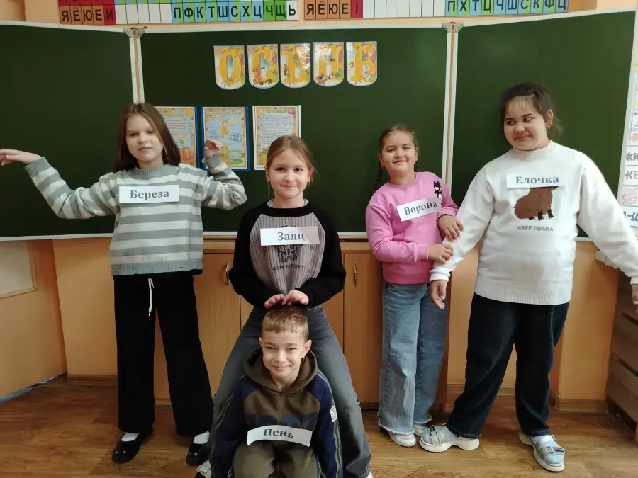 Учащиеся 3 "Б" класса - "Осенние фантазии". Во время ее ребята разгадывали загадки, вспоминали народные приметы в "Осенней викторине". Потом инсценировали сказку про осенний лес. А в завершении сделали поделку из листьев одного из лесных жителей.