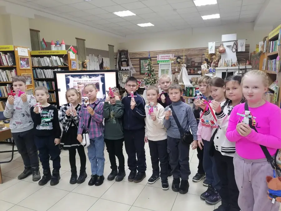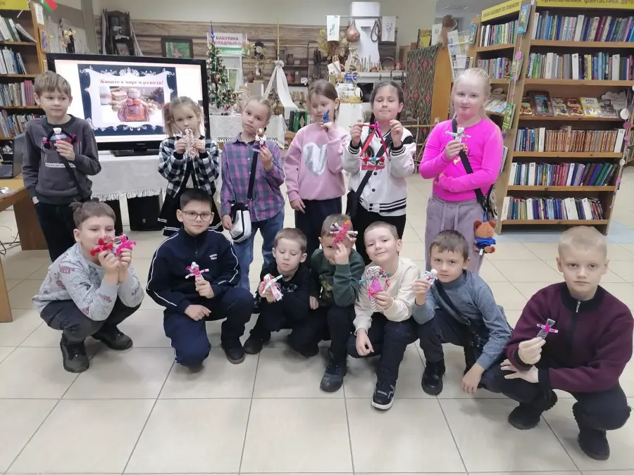 Учащиеся 2-х классов стали участниками захватывающего путешествия в прошлое. Библиотекарь-краевед Алла Смирнова с помощью электронной презентации «Наши обереги» рассказала учащимся про народные обереги наших предков.Дети узнали, что на Беларуси издавна считали, что обереги защищают от болезней, «дурного глаза», злых духов и стихийных бедствий. Такие вещи и сейчас украшают наши дома, делают их уютными, сохраняют семейные традиции.В заключение встречи ребята сделали куклу-оберег своими руками.