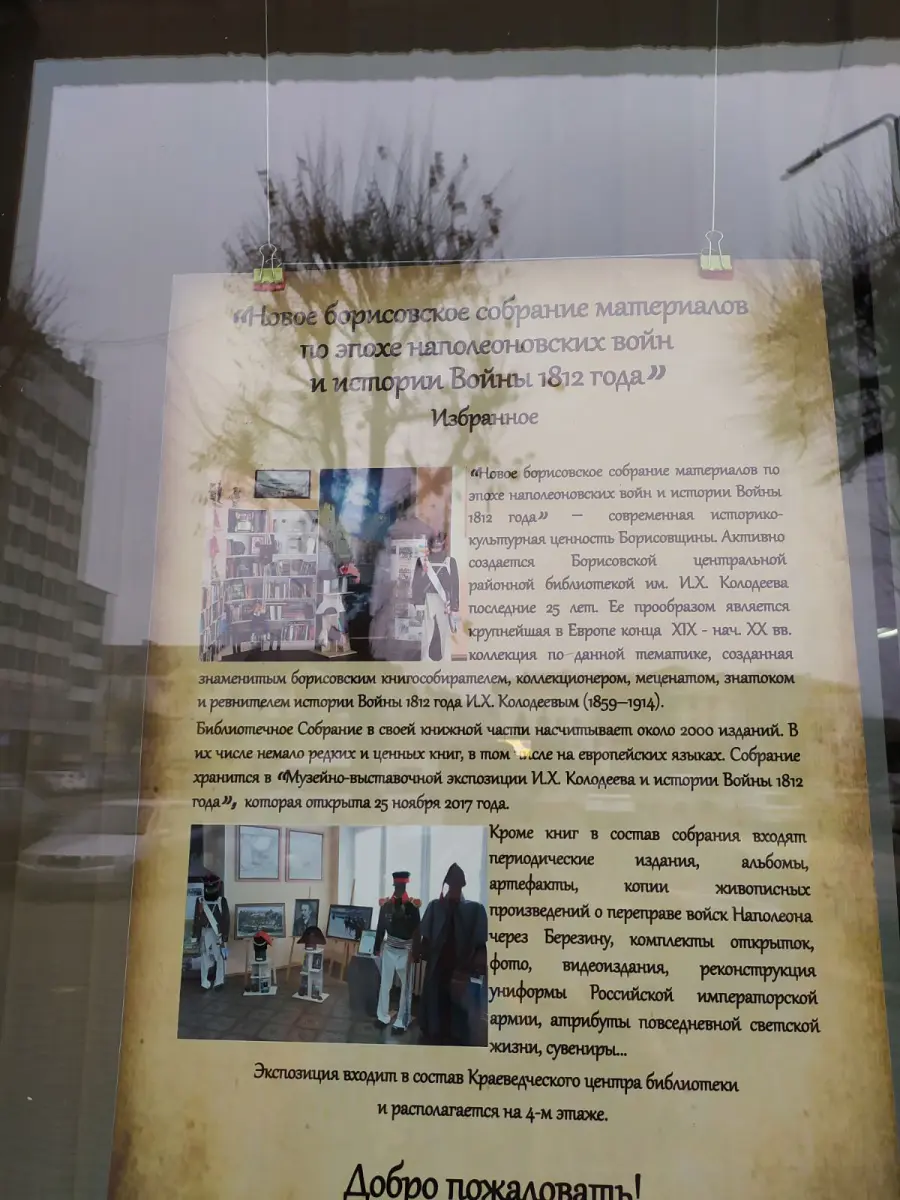 Учащиеся 6 "Б"и 6 "В" классов посетили выставку, посвященную событиям 1812 г. на Борисовщине. Учащиеся узнали о событиях войны 1812г., героях того времени, рассмотрели артефакты, копии живописный произведений,открытки, униформу русской армии, оружие.