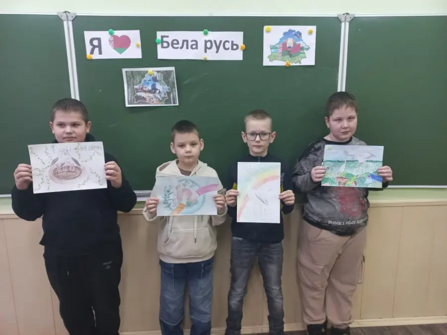 В 4 "В" и 4 "Г" классах прошел конкурс рисунков "Моя Беларусь". Ребята говорили о Родине и вспоминали красоты своей страны. Беларусь — это красивая и мирная страна с богатой историей, природой (леса, озера). Ребята поговорили о своих любимых уголках Беларуси и отобразили их в своей работе.