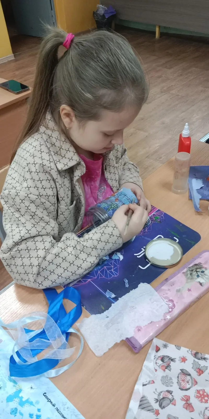 До Нового года осталось совсем немного времени — самое время создать атмосферу волшебства! На нашей прошедшей мастерской учащиеся 3 "В" класса погрузились в увлекательный мир декупажа.