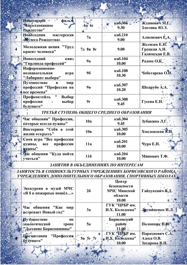 В шестой школьный день учащиеся 9-х классов побывали на встрече с представителями университета гражданской защиты, БГУ транспорта г. Гомеля и Минского государственного колледжа железнодорожного транспорта. Ребят ознакомили с профессиями, которые можно получить в данных учреждениях страны, с правилами приёма и перспективами работы в сферах транспорта.