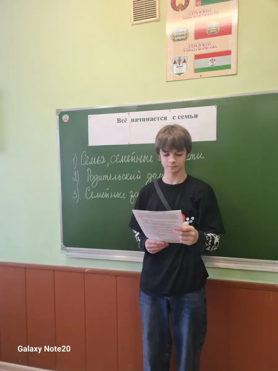 24 января учащимся 9 "Б" класса была продемонстрирована мультимедийная презентация, раскрывающая понятия: семейные традиции, любовь, уважение, ответственность, взаимопонимание.