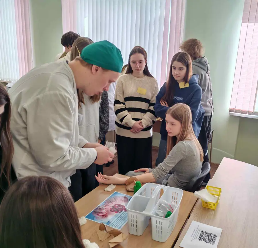 Наши гимназисты совместно с преподавателями и студентами Борисовского государственного медицинского колледжа учились оказывать помощь при всех опасных состояниях: кровотечениях, травмах, потери сознания. Такие ситуации требуют осознанных действий еще до прибытия скорой.