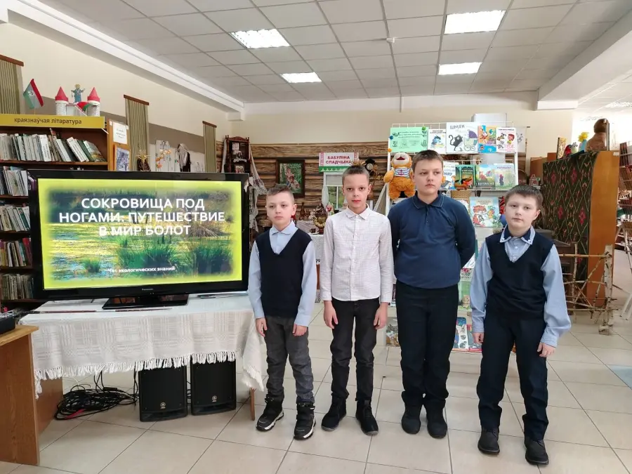 4а участвовал в мероприятии "Сокровища под ногами. Путешествие в мир болот". Дети узнали, какие есть болота в Беларуси, какие птицы и звери там живут, какую пользу приносят болота природе. Поучаствовали в викторине "Угадай, кто это?", побывали в заочном путешествии по комплексую болот" Ельня",познакомились с правилами безопасного поведения на водоёмах.