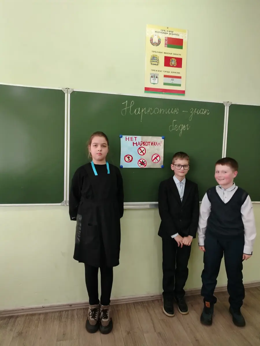 Учащиеся 4 "А" класса прослушали беседу "Наркотик-знак беды", из которой узнали, какие вещества являются наркотиками и как им противостоять. Затем дети нарисовали плакат 'Нет наркотикам".